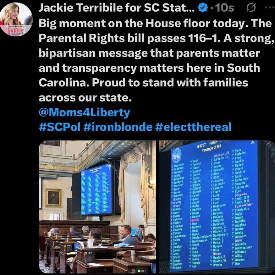 By a vote of 116-1, this week South Carolina’s Parental Rights bill passed the House reinforcing a principle most Americans agree with: parents are the best protectors of their children and must be entrusted to nurture their education and well-being.
