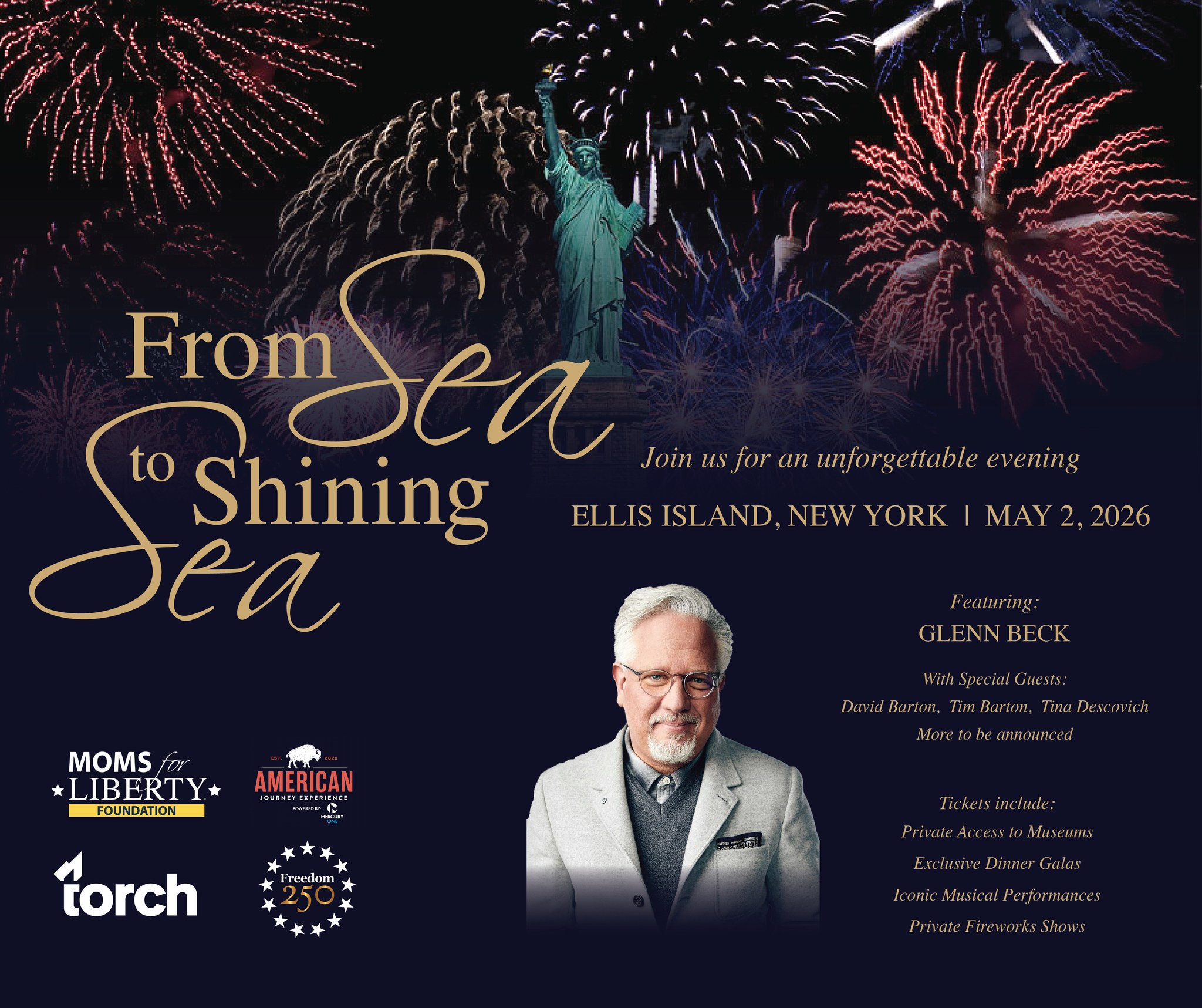 Melbourne, Florida – On May 2nd, 2026, Moms for Liberty Foundation and Glenn Beck’s new venture, Torch and American Journey Experience will partner with Freedom 250 to host a celebration of America’s 250th anniversary on Ellis Island.